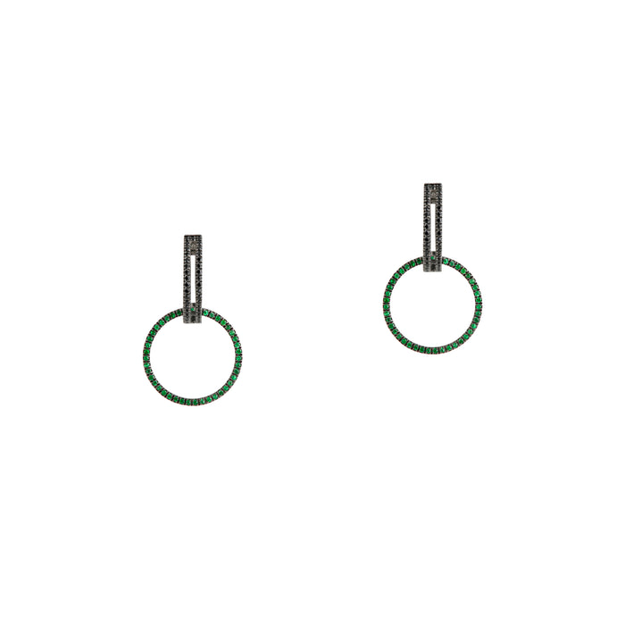 BLACK SPINEL OPEN BAR HUGGIES w/ REVERSIBLE BLACK SPINEL & GREEN GARNET ROUND EXTENSIONS - Bridget King Jewelry